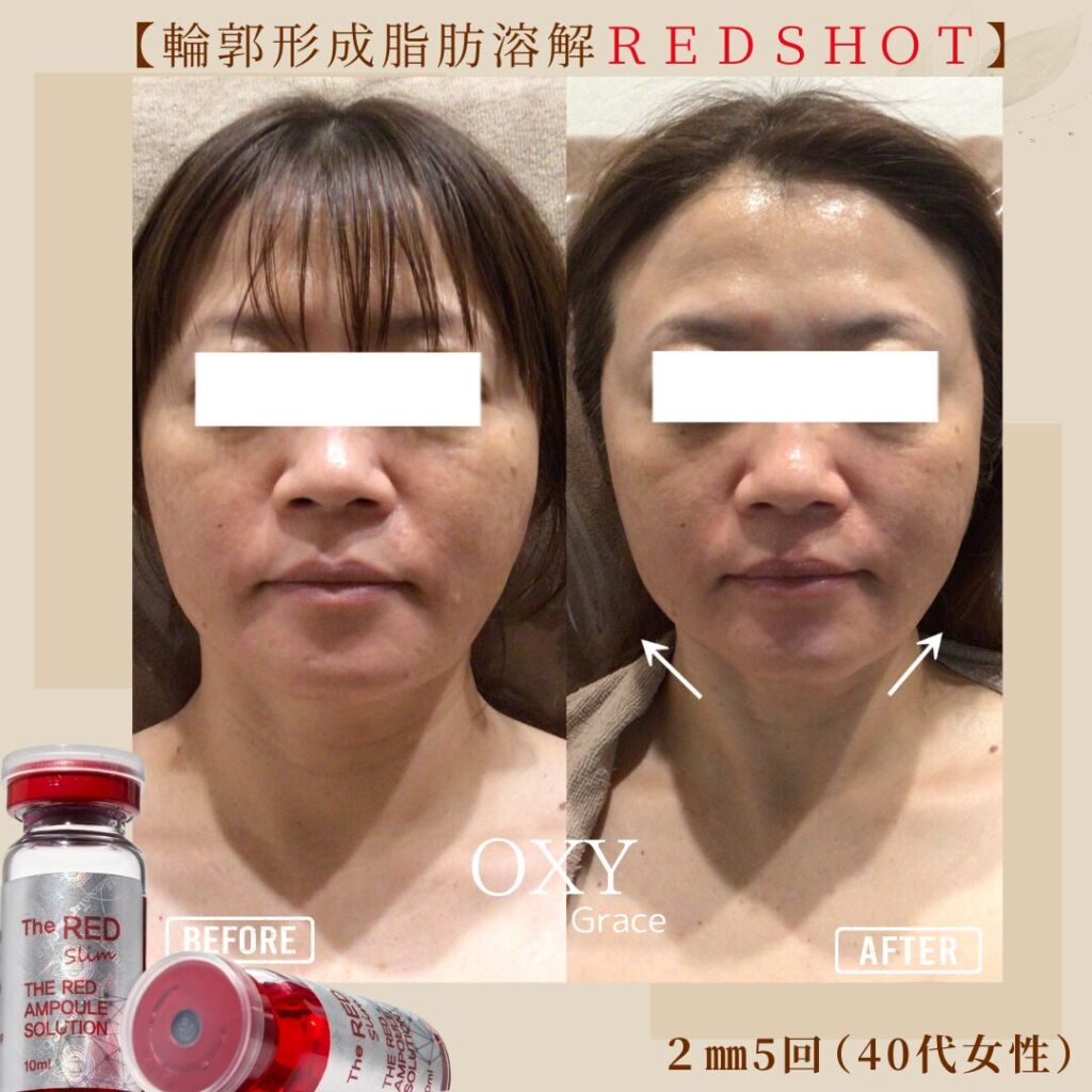 REDショット」とは、脂肪溶解成分「レモンボトル」に、肌再生美容液がプラスされた最新の美容液です。クリニックにも導入されています。